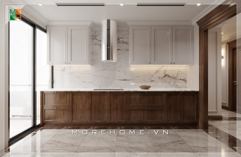 Mẫu thiết kế nội thất phòng bếp hiện đại, có phong cách trẻ trung và đầy đủ các tiện nghi.